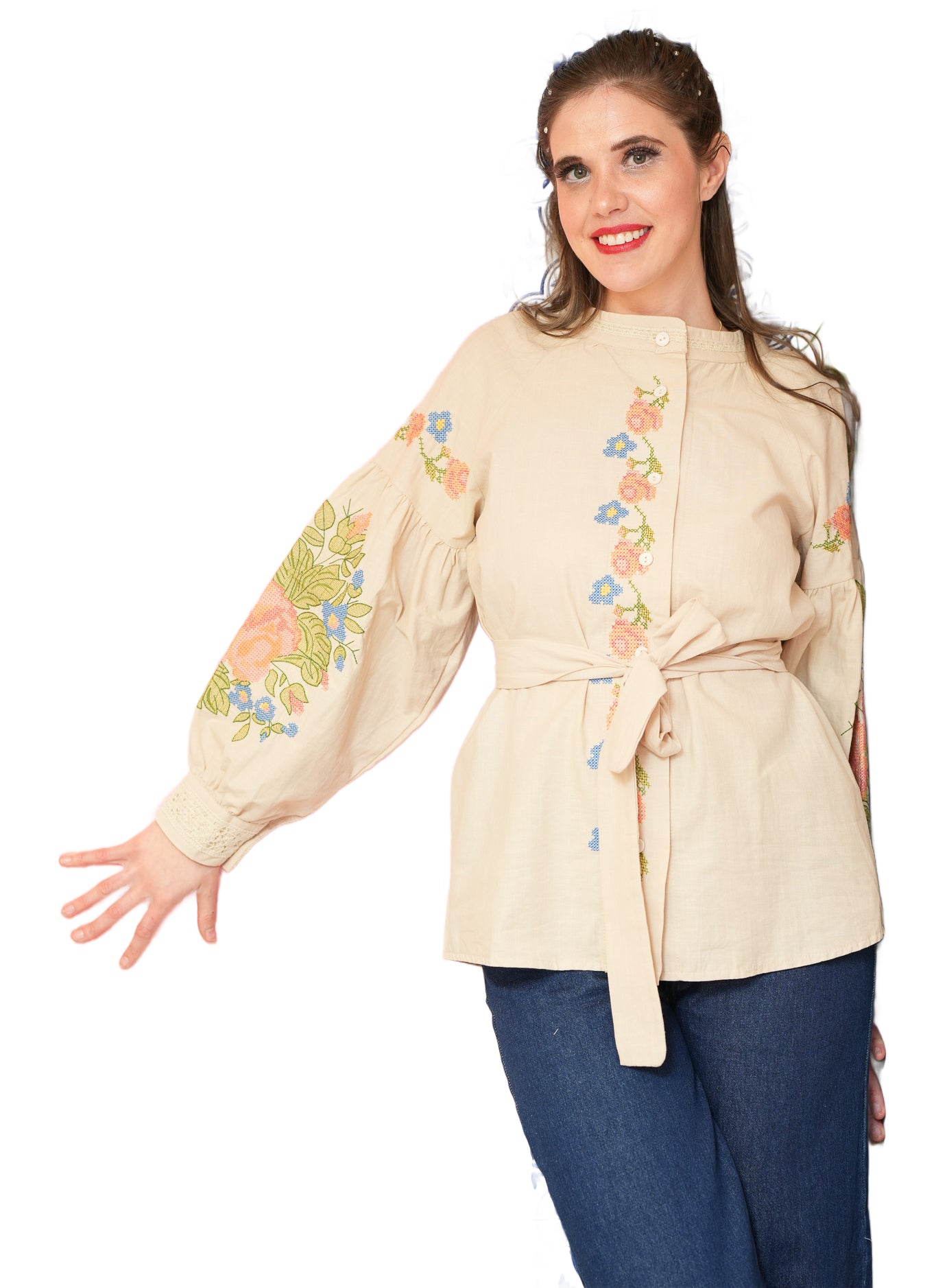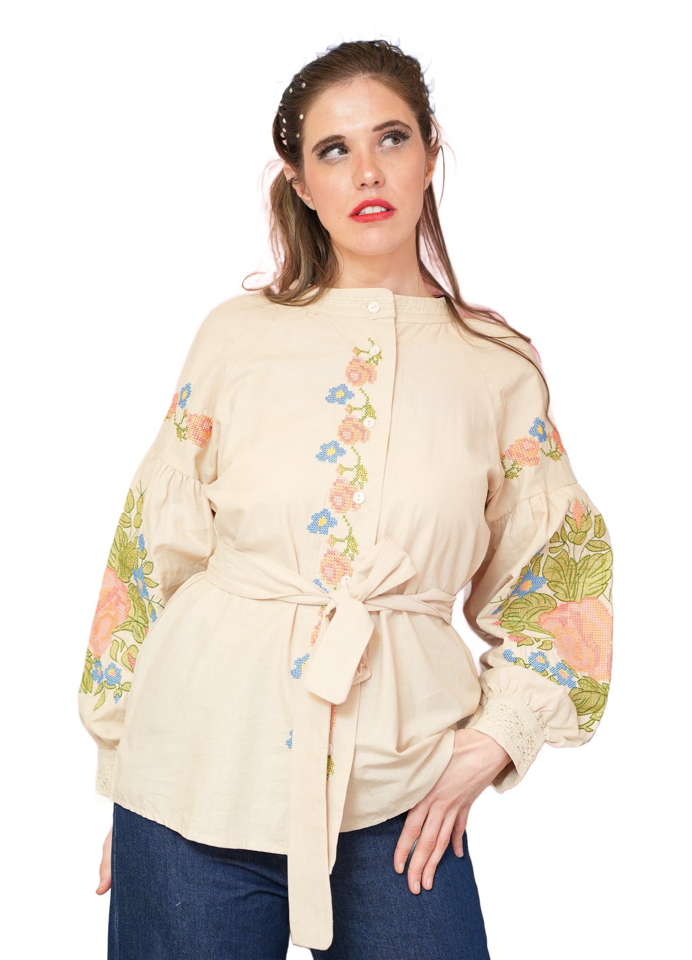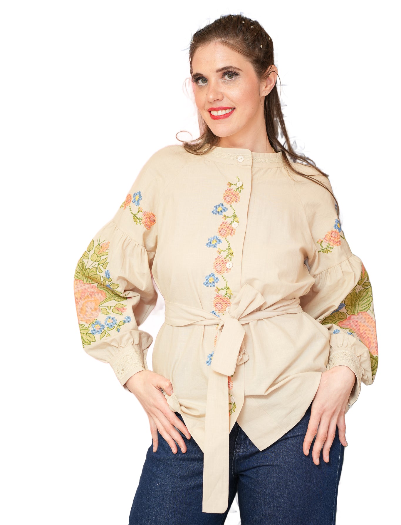● Design: Button-down front, statement floral embroidery on front & balloon sleeves