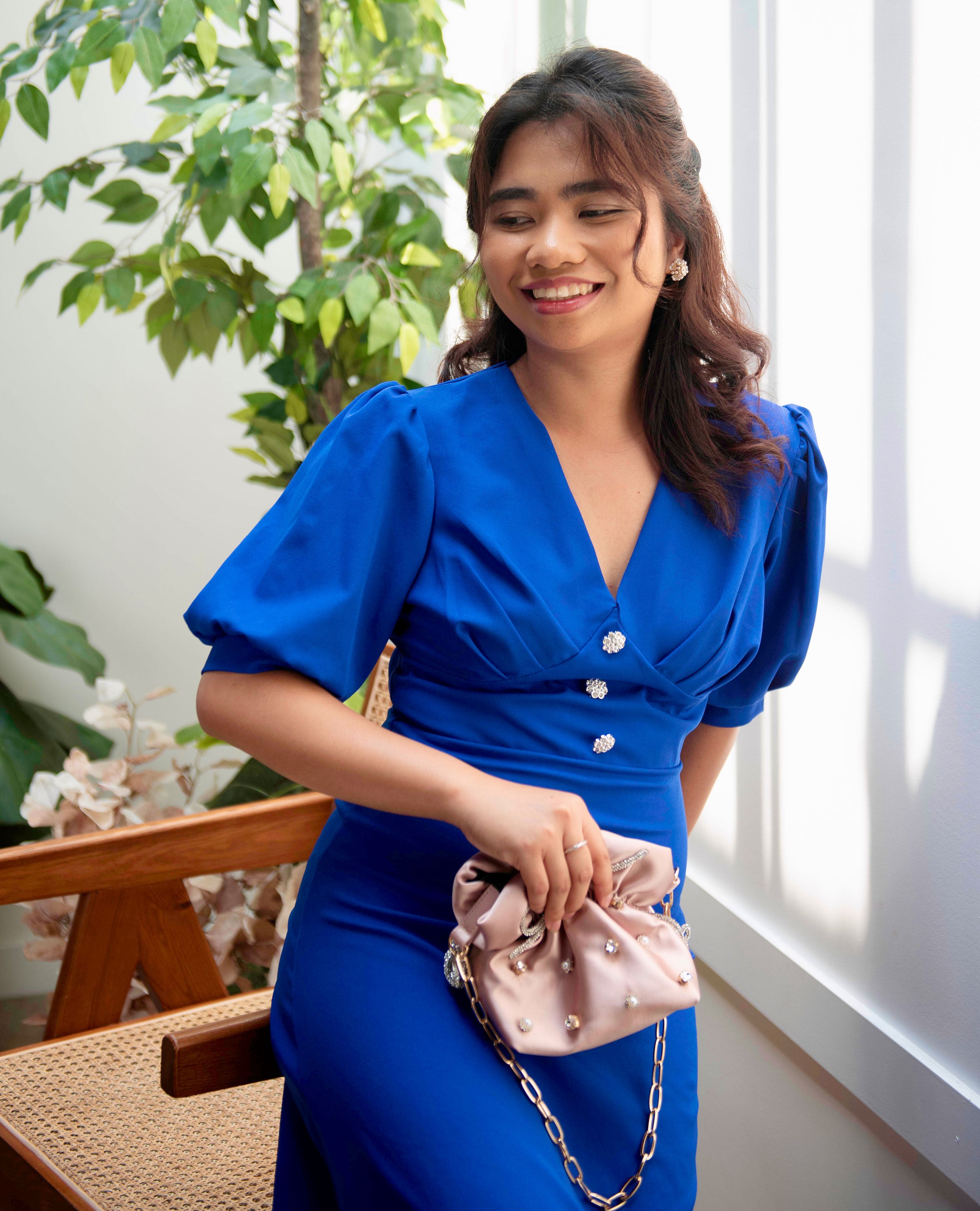 Step into elegance with our stunning Blue Evening Dress. Crafted from luxurious chiffon, this dress features a flowing A-line silhouette that flatters every figure. The deep blue hue exudes sophistication, making it perfect for formal events and special occasions.