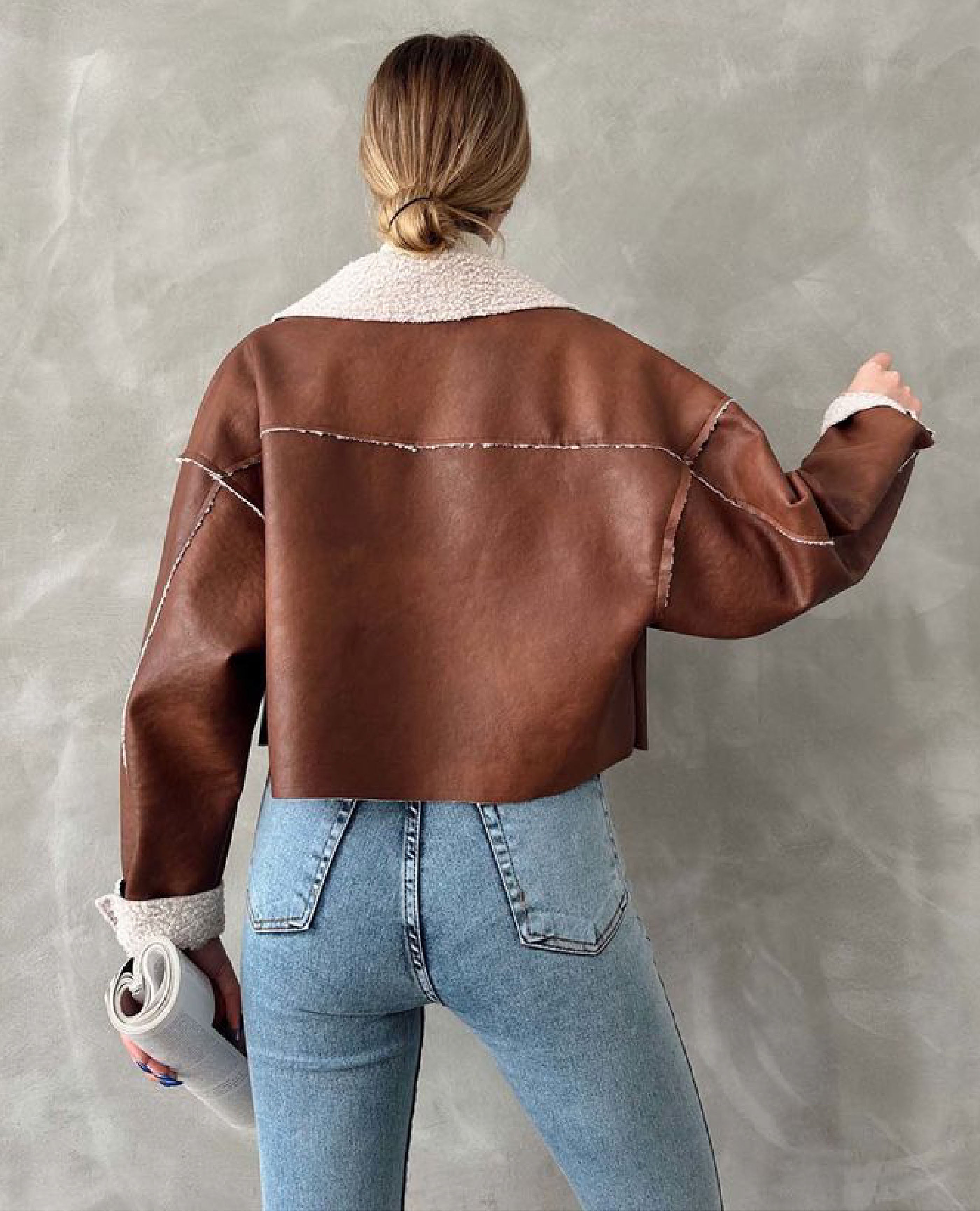 Whether you’re heading out for a casual day or an evening event, the Pumpkin Spice  Leatherette Jacket is your go-to piece for a touch of seasonal charm and luxury.