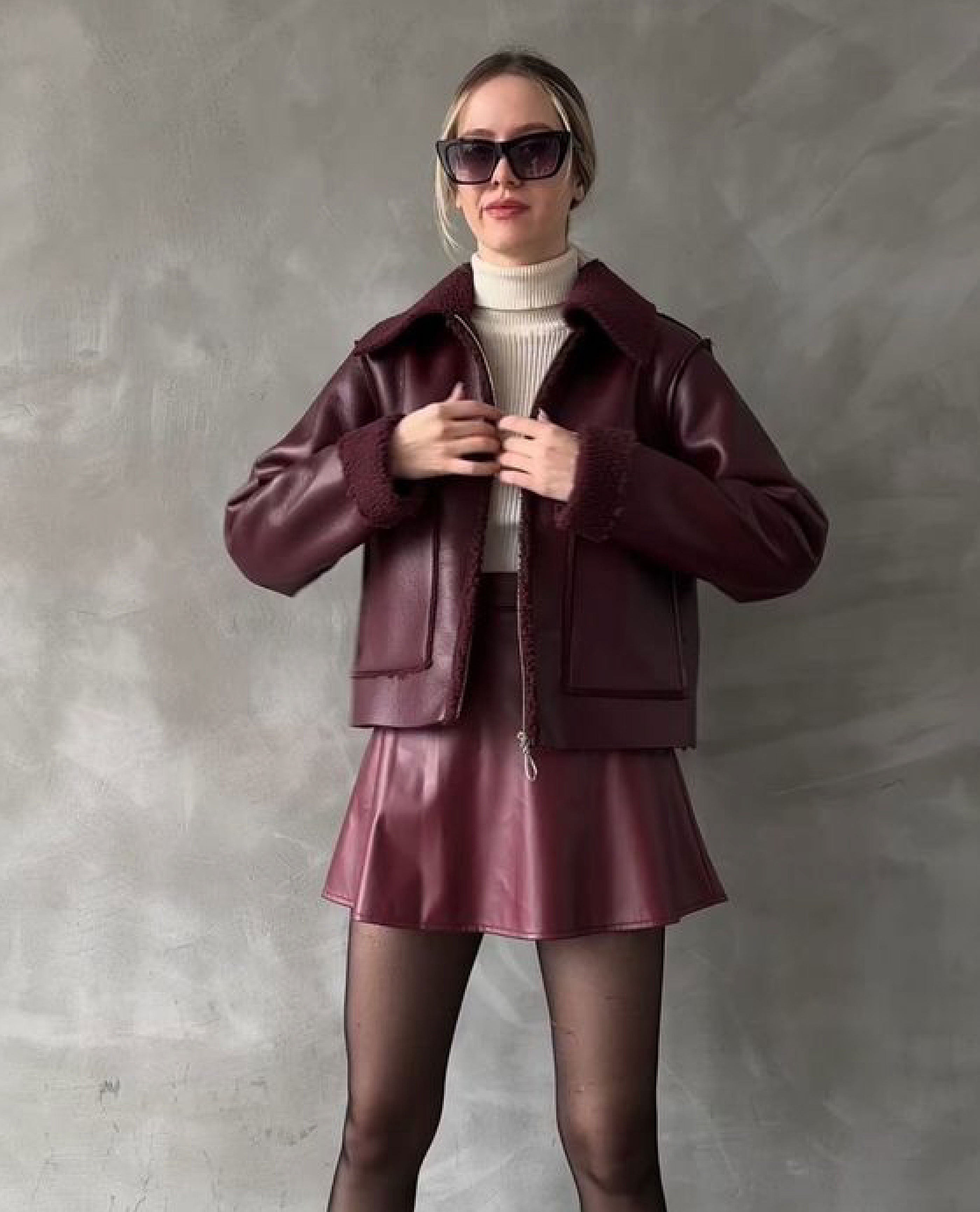 Whether you’re heading out for a night on the town or a casual day out, the Ruby Rush Leatherette Jacket is your go-to piece for a touch of luxury and flair.