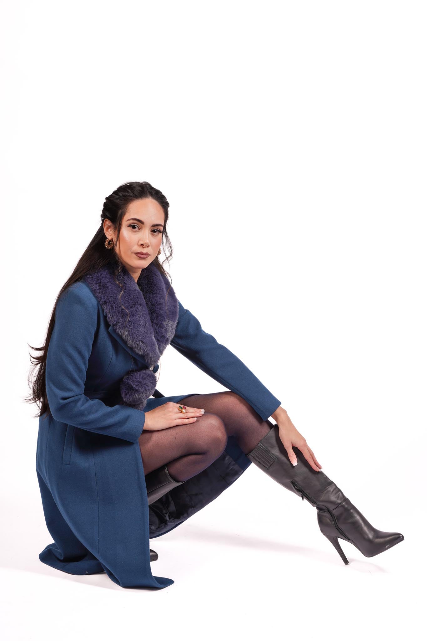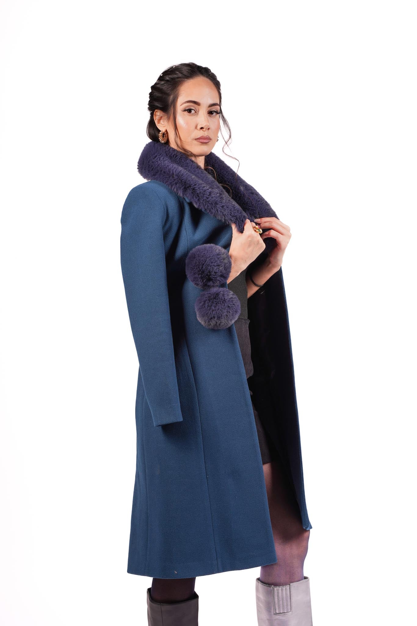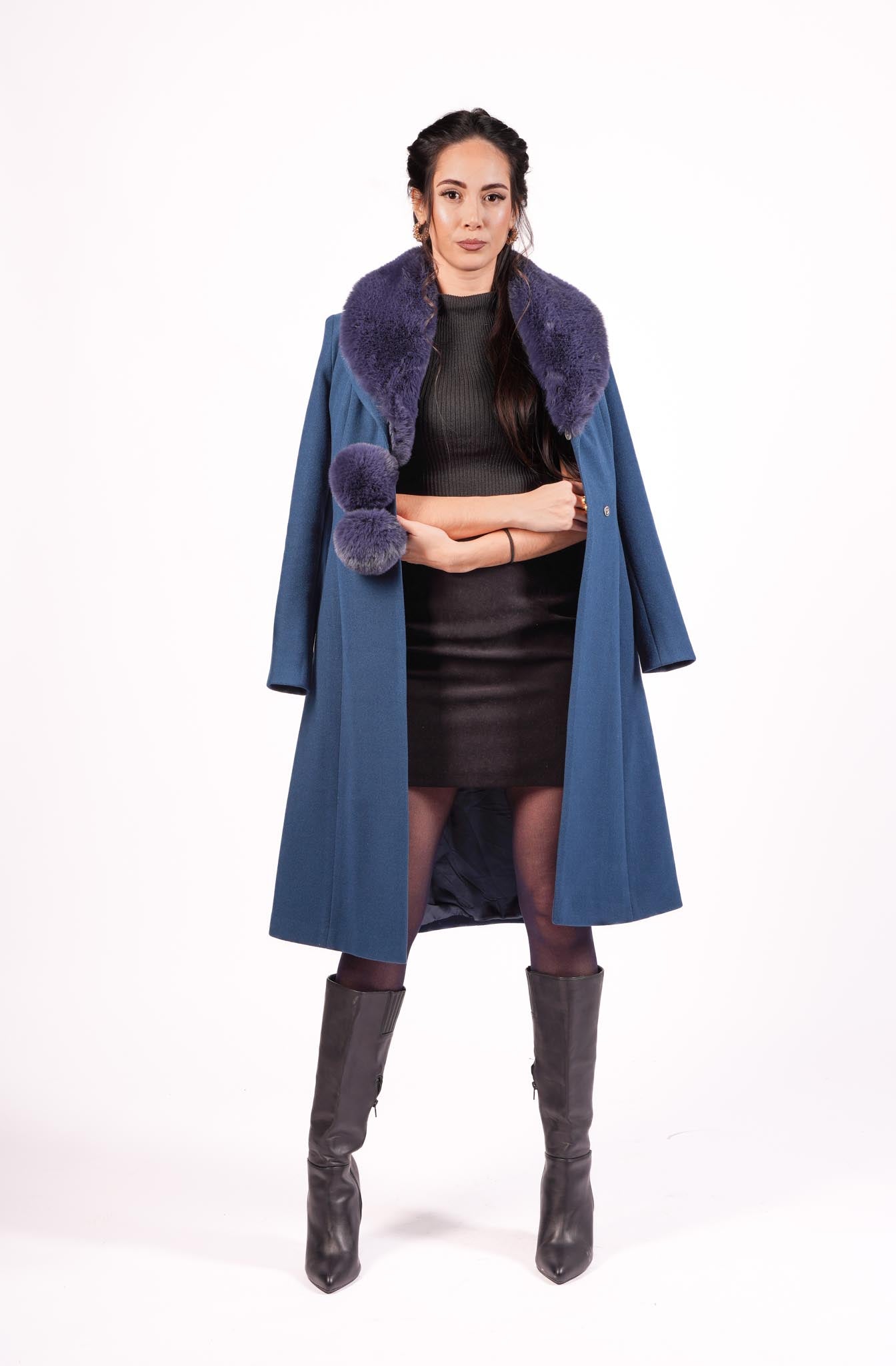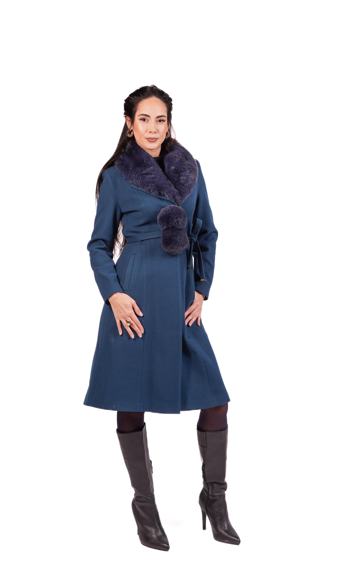 Elevate your winter wardrobe with the Teal Luxe Coat. This knee-length coat in a stunning teal hue features a luxurious dark fur collar and two large fur pom-poms hanging down the front, adding a touch of whimsy. The fitted design is cinched at the waist with a matching belt, creating a flattering silhouette. Perfect for both casual and formal occasions, this coat combines elegance and playfulness effortlessly.