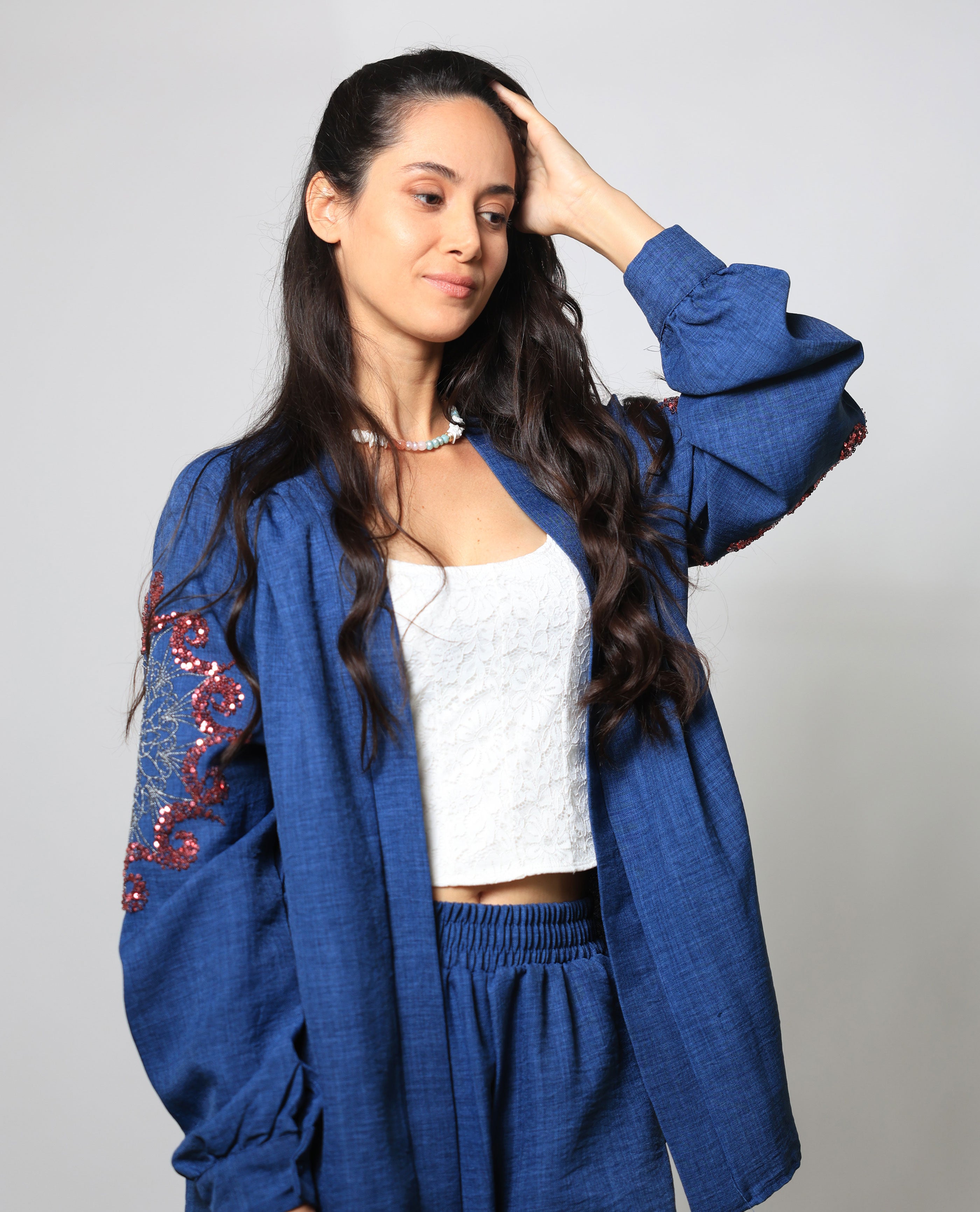Make a dazzling entrance with our Viola coord Set, designed to blend elegance with a touch of sparkle. This set features a beautifully coordinated top and bottom, each piece crafted to offer both style and comfort. The highlight of this ensemble is the stunning sequins work on the back, adding a glamorous flair to your look.